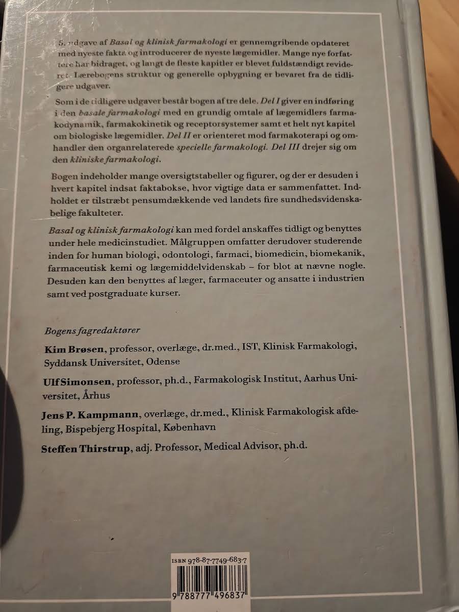 I 5. udgave af Basal og klinisk farmakologi er der foretaget en omfattende revision af samtlige kapitler, hvor opdaterede fakta og introduktion af nye lægemidler giver læseren et moderne overblik over lægemidlers rolle i samfundet. Gennem en ny strukturel opbygning, hvor oversigtstabeller, figurer og faktabokse understøtter stoffet, bliver de komplekse farmakologiske emner formidlet på en lettilgængelig måde. Bogen dækker et bredt spektrum af sundhedsvidenskabelige fagområder og er et uundværligt redskab for medicinstuderende og studerende inden for human biologi, odontologi, farmaci, biomedicin, biomekanik, farmaceutisk kemi og lægemiddelvidenskab. Den opdaterede version henvender sig også til læger, farmaceuter og industriarbejdere, hvilket gør den til et værdifuldt værktøj både under og efter studiet.
