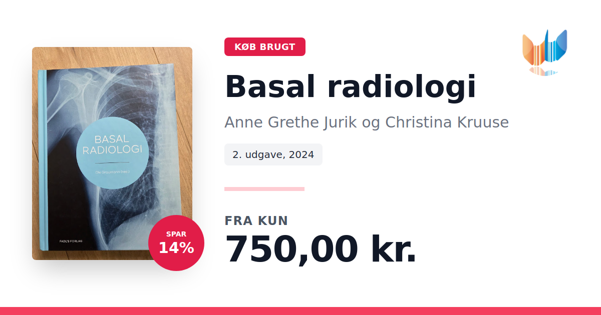Lige nu kan du købe "Basal radiologi" af Anne Grethe Jurik og Christina Kruuse til kun 750,00 kr. Du sparer hele 14% af nyprisen! Bogen du ser her er brugt, og i perfekt stand. Vi har i øjeblikket kun et enkelt eksemplar til salg af "Basal Radiologi", så slå til mens du kan!