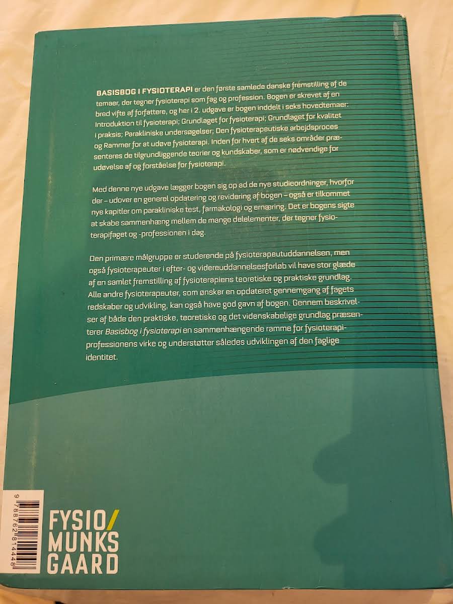 "Basisbog i fysioterapi" i 2. udgave præsenterer en grundig og samlet introduktion til de centrale principper og metoder, der kendetegner fysioterapien som fag og profession. Bogen rummer en mangfoldig samling bidrag fra anerkendte eksperter, herunder blandt andre Jane Andreasen, Jørn Hansen og Åse Brandt, og giver dermed en bred forankring i både teori og praksis. I denne opdaterede udgave udforskes fysioterapiens fundament gennem en række nøje udvalgte temaer, der spænder over det praktiske og det videnskabelige grundlag for faget. Læseren bliver budt velkommen til en dybdegående gennemgang af alt fra de teoretiske forudsætninger og kliniske kvalitetskriterier til de processuelle og samfundsmæssige perspektiver, som er afgørende for en moderne fysioterapeutisk praksis. Med sit omfattende indhold og klare struktur henvender bogen sig primært til studerende på fysioterapeutuddannelsen, men den er ligeledes en værdifuld ressource for praktiserende fysioterapeuter, der ønsker at opdatere og udvide deres faglige kompetencer. Denne 2. udgave understøtter udviklingen af den professionelle identitet og tilbyder læseren et solidt fundament for en reflekteret og evidensbaseret praksis.