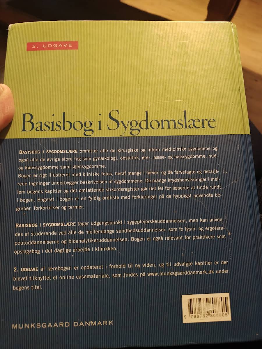 "Basisbog i sygdomslære" er en grundig og velstruktureret bog, som som titlen antyder, dykker ned i sygdommenes verden. Bogen præsenterer både de hyppige sygdomme, vi møder i hverdagen, og de sjældnere patologier, der kræver en ekstra omhu i forståelsen. Med et væld af kliniske fotos og farverige, detaljerede tegninger giver bogen et solidt visuelt grundlag, der understøtter de grundige beskrivelser af de enkelte sygdomme. De mange krydshenvisninger og det omfattende indeks gør det let for læseren hurtigt at finde netop den information, der søges. Specielt udarbejdet med udgangspunkt i sygeplejerskeuddannelsen, er "Basisbog i sygdomslære" et uundværligt redskab for studerende på mellemlange sundhedsuddannelser som fysioterapi, ergoterapi og bioanalytikeruddannelsen. Derudover er bogen et praktisk opslagsværk for professionelle, der til daglig arbejder med sygdomme. Udgivet i 2010 af Munksgaard og indeholdende 680 sider med fyldig og opdateret viden, er "Basisbog i sygdomslære" et essentielt værktøj for både studerende og praktikere inden for sundhedssektoren.