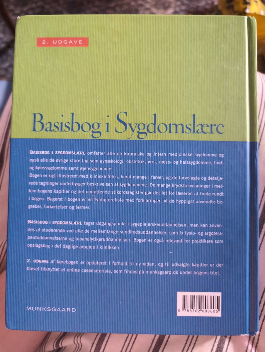 "Basisbog i sygdomslære" er en grundig og velstruktureret bog, som som titlen antyder, dykker ned i sygdommenes verden. Bogen præsenterer både de hyppige sygdomme, vi møder i hverdagen, og de sjældnere patologier, der kræver en ekstra omhu i forståelsen. Med et væld af kliniske fotos og farverige, detaljerede tegninger giver bogen et solidt visuelt grundlag, der understøtter de grundige beskrivelser af de enkelte sygdomme. De mange krydshenvisninger og det omfattende indeks gør det let for læseren hurtigt at finde netop den information, der søges. Specielt udarbejdet med udgangspunkt i sygeplejerskeuddannelsen, er "Basisbog i sygdomslære" et uundværligt redskab for studerende på mellemlange sundhedsuddannelser som fysioterapi, ergoterapi og bioanalytikeruddannelsen. Derudover er bogen et praktisk opslagsværk for professionelle, der til daglig arbejder med sygdomme. Udgivet i 2010 af Munksgaard og indeholdende 680 sider med fyldig og opdateret viden, er "Basisbog i sygdomslære" et essentielt værktøj for både studerende og praktikere inden for sundhedssektoren.