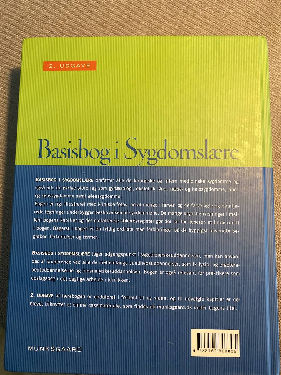 "Basisbog i sygdomslære" er en grundig og velstruktureret bog, som som titlen antyder, dykker ned i sygdommenes verden. Bogen præsenterer både de hyppige sygdomme, vi møder i hverdagen, og de sjældnere patologier, der kræver en ekstra omhu i forståelsen. Med et væld af kliniske fotos og farverige, detaljerede tegninger giver bogen et solidt visuelt grundlag, der understøtter de grundige beskrivelser af de enkelte sygdomme. De mange krydshenvisninger og det omfattende indeks gør det let for læseren hurtigt at finde netop den information, der søges. Specielt udarbejdet med udgangspunkt i sygeplejerskeuddannelsen, er "Basisbog i sygdomslære" et uundværligt redskab for studerende på mellemlange sundhedsuddannelser som fysioterapi, ergoterapi og bioanalytikeruddannelsen. Derudover er bogen et praktisk opslagsværk for professionelle, der til daglig arbejder med sygdomme. Udgivet i 2010 af Munksgaard og indeholdende 680 sider med fyldig og opdateret viden, er "Basisbog i sygdomslære" et essentielt værktøj for både studerende og praktikere inden for sundhedssektoren.