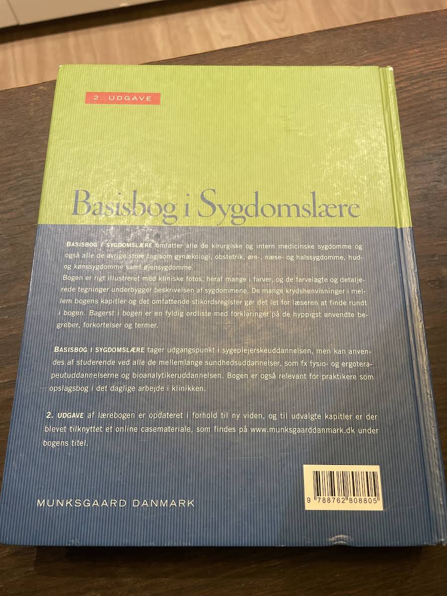 "Basisbog i sygdomslære" er en grundig og velstruktureret bog, som som titlen antyder, dykker ned i sygdommenes verden. Bogen præsenterer både de hyppige sygdomme, vi møder i hverdagen, og de sjældnere patologier, der kræver en ekstra omhu i forståelsen. Med et væld af kliniske fotos og farverige, detaljerede tegninger giver bogen et solidt visuelt grundlag, der understøtter de grundige beskrivelser af de enkelte sygdomme. De mange krydshenvisninger og det omfattende indeks gør det let for læseren hurtigt at finde netop den information, der søges. Specielt udarbejdet med udgangspunkt i sygeplejerskeuddannelsen, er "Basisbog i sygdomslære" et uundværligt redskab for studerende på mellemlange sundhedsuddannelser som fysioterapi, ergoterapi og bioanalytikeruddannelsen. Derudover er bogen et praktisk opslagsværk for professionelle, der til daglig arbejder med sygdomme. Udgivet i 2010 af Munksgaard og indeholdende 680 sider med fyldig og opdateret viden, er "Basisbog i sygdomslære" et essentielt værktøj for både studerende og praktikere inden for sundhedssektoren.