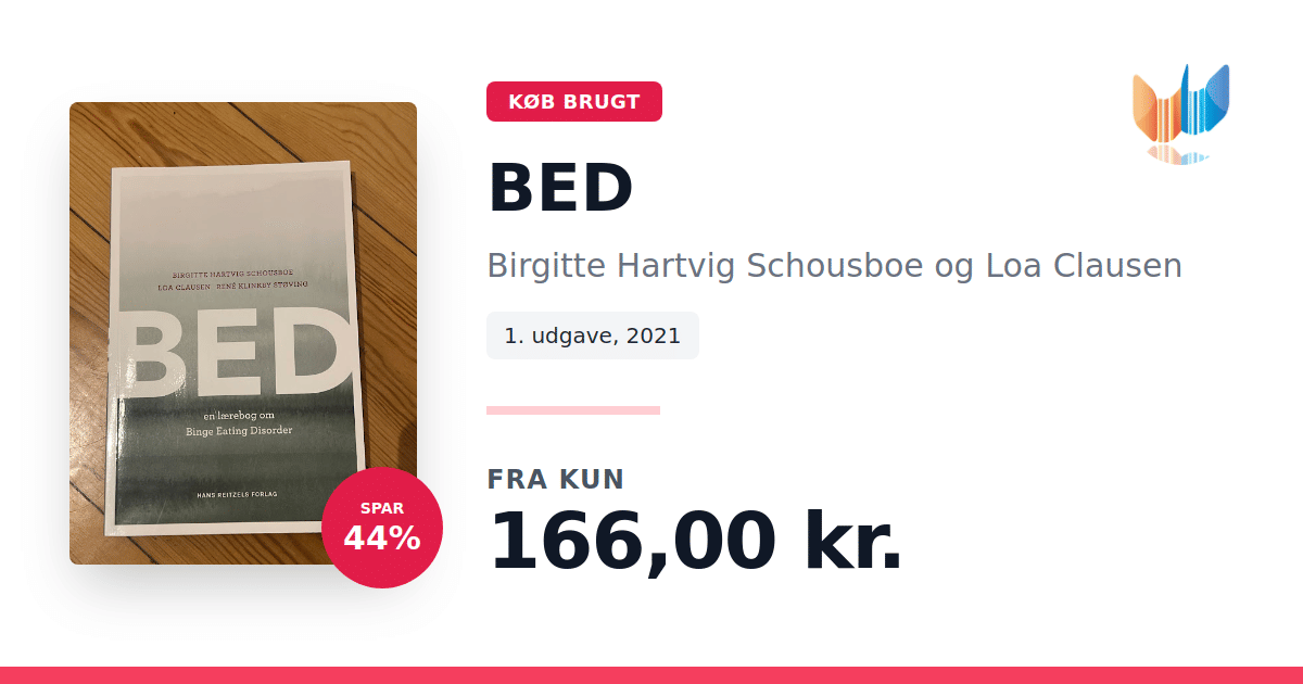 Lige nu kan du købe "BED" af Birgitte Hartvig Schousboe og Loa Clausen til kun 166,00 kr. Du sparer hele 44% af nyprisen! Bogen du ser her er brugt, og i perfekt stand. Vi har i øjeblikket 2 eksemplarer til salg af "BED", så husk at se de forskellige udgaver.