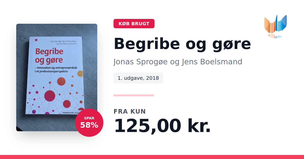 Lige nu kan du købe "Begribe og gøre" af Jonas Sprogøe og Jens Boelsmand til kun 125,00 kr. Du sparer hele 58% af nyprisen! Bogen du ser her er brugt, og i god stand. Vi har i øjeblikket kun et enkelt eksemplar til salg af "Begribe og gøre", så slå til mens du kan!