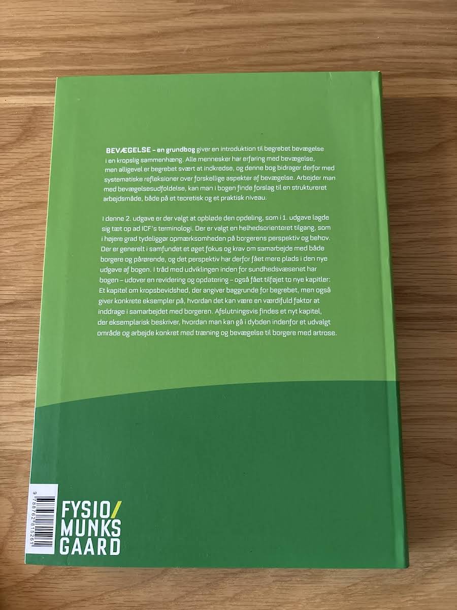 "Bevægelse" er en grundbog, der giver en introduktion til bevægelse som et kropsligt fænomen. Selvom alle har erfaring med bevægelse, er begrebet ofte vanskeligt at fastlægge. Bogen bidrager med systematiske refleksioner over forskellige aspekter af bevægelse, og den præsenterer en struktureret arbejdsmåde, som kan anvendes både teoretisk og praktisk. Med 328 sider tilbyder værket en helhedsorienteret tilgang, der fremhæver vigtigheden af at se den enkelte borgers perspektiv og behov. Ved at kombinere teoretiske overvejelser med konkrete forslag til bevægelsesudfoldelse, bliver læseren rustet til at gribe ind i og arbejde med bevægelse på en ny og nuanceret måde.