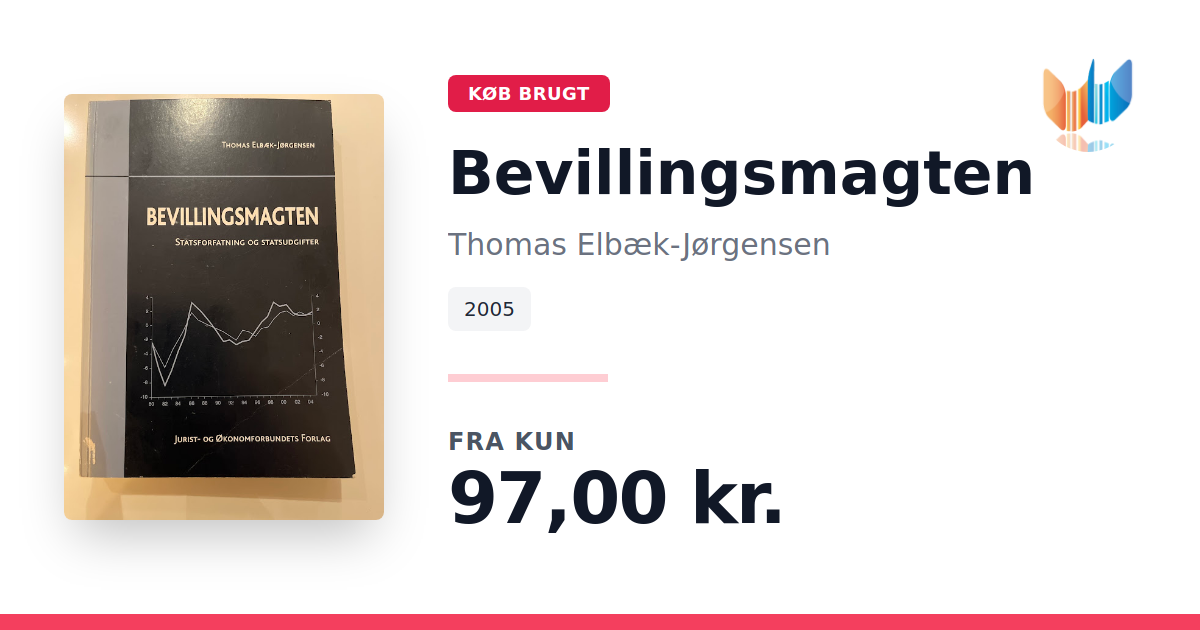 Lige nu kan du købe "Bevillingsmagten" af Thomas Elbæk-Jørgensen til kun 97,00 kr. Bogen du ser her er brugt, og i god stand. Vi har i øjeblikket kun et enkelt eksemplar til salg af "Bevillingsmagten", så slå til mens du kan!