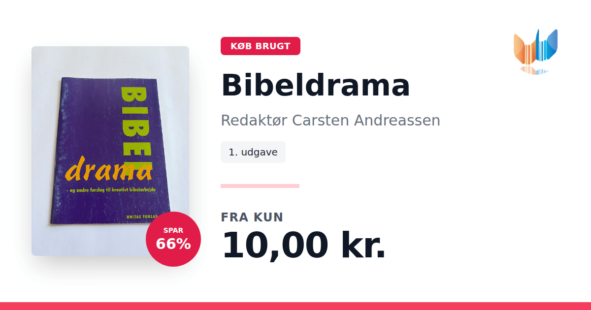 Lige nu kan du købe "Bibeldrama" af Redaktør Carsten Andreassen til kun 10,00 kr. Du sparer hele 66% af nyprisen! Bogen du ser her er brugt, og i god stand. Vi har i øjeblikket kun et enkelt eksemplar til salg af "Bibeldrama", så slå til mens du kan!