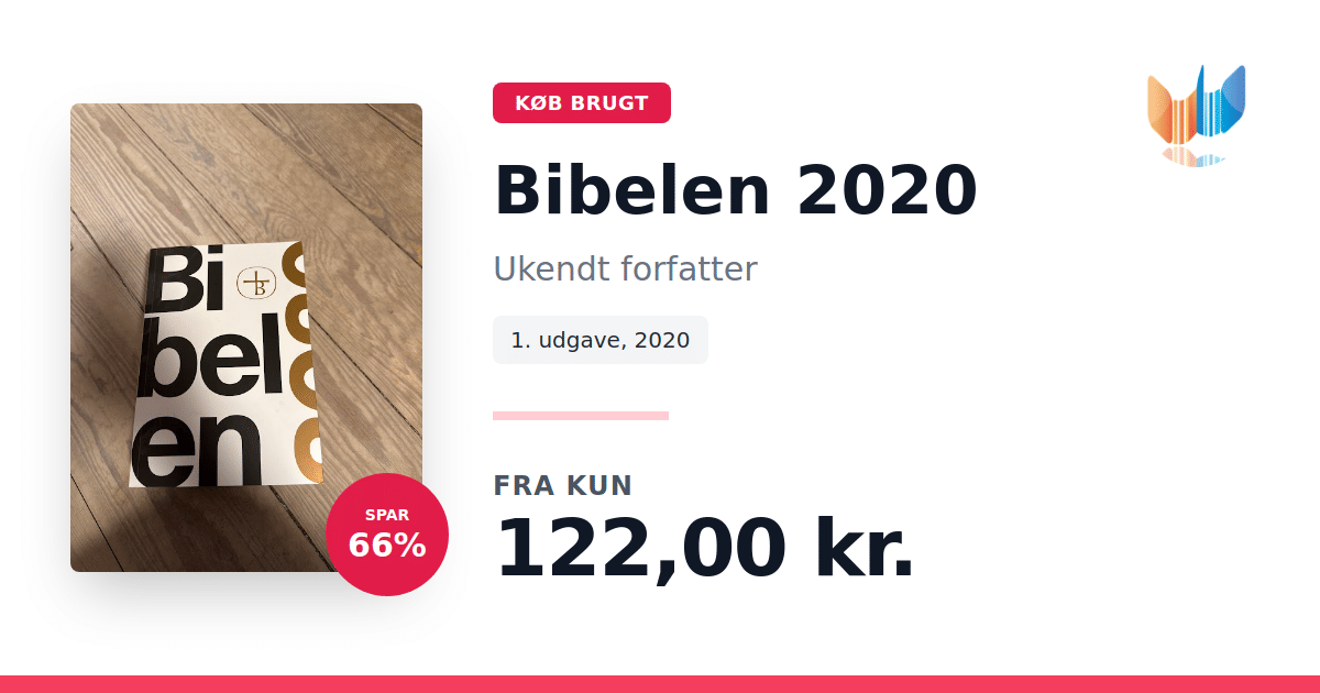 Lige nu kan du købe "Bibelen 2020" af Ukendt forfatter til kun 122,00 kr. Du sparer hele 66% af nyprisen! Bogen du ser her er brugt, og i perfekt stand. Vi har i øjeblikket kun et enkelt eksemplar til salg af "Bibelen 2020", så slå til mens du kan!
