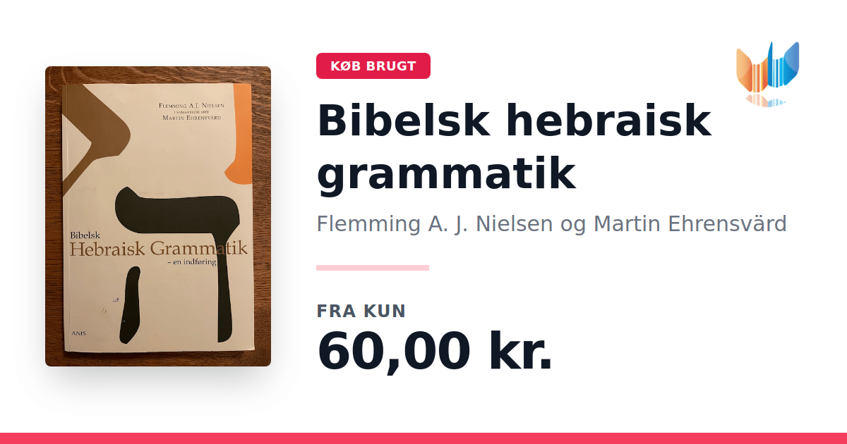 Lige nu kan du købe "Bibelsk hebraisk grammatik" af Flemming A. J. Nielsen og Martin Ehrensvärd til kun 60,00 kr. Bogen du ser her er brugt, og i god stand. Vi har i øjeblikket kun et enkelt eksemplar til salg af "Bibelsk hebraisk grammatik", så slå til mens du kan!