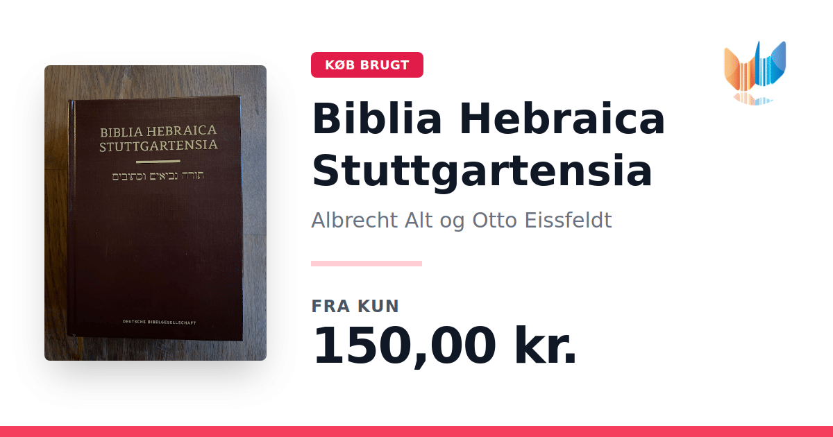 Lige nu kan du købe "Biblia Hebraica Stuttgartensia" af Albrecht Alt og Otto Eissfeldt til kun 150,00 kr. Bogen du ser her er brugt, og i god stand. Vi har i øjeblikket kun et enkelt eksemplar til salg af "Biblia Hebraica Stuttgartensia", så slå til mens du kan!