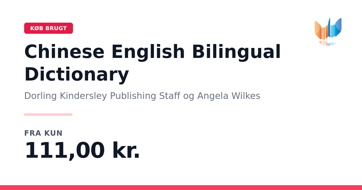 Lige nu kan du købe "Chinese English Bilingual Dictionary" af Dorling Kindersley Publishing Staff og Angela Wilkes til kun 111,00 kr. Du sparer hele 42% af nyprisen! Bogen du ser her er brugt, og i perfekt stand. Vi har i øjeblikket kun et enkelt eksemplar til salg af "Chinese English Bilingual Dictionary", så slå til mens du kan!