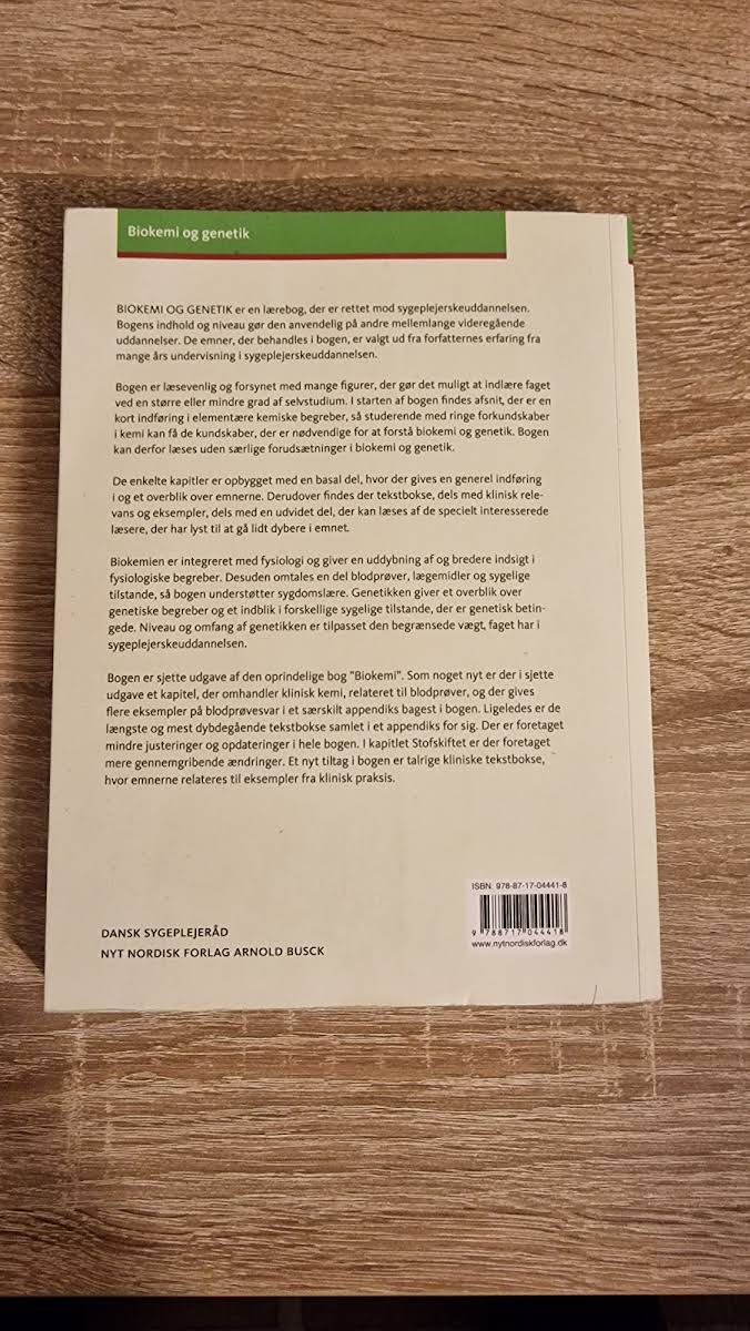 Biokemi og genetik er en grundigt revideret lærebog, der henvender sig primært til sygeplejestuderende, men som også er velegnet til andre mellemlange videregående uddannelser. Bogen baserer sig på forfatternes omfattende erfaring fra undervisningen og formår at gøre komplekse emner tilgængelige med en række illustrative figurer og overskuelige strukturer. Bogen indleder med en kort introduktion til centrale kemiske koncepter, så selv studerende med begrænsede forkundskaber kan tilegne sig de nødvendige kompetencer til at forstå de videregående emner i både biokemi og genetik. Hvert kapitel begynder med en grundlæggende gennemgang og udvider derefter med tekstbokse, der både indeholder kliniske eksempler og uddybende oplysninger for den nysgerrige læser. Særligt integreres biokemi med fysiologi, hvilket giver en dybere indsigt i kroppens funktioner, inklusive behandling af blodprøver, lægemidler og sygdomme. Genetikdelen giver et solidt overblik over centrale genetiske principper og forklarer, hvordan disse relaterer sig til forskellige arvelige sygdomme. Med nyheder som et særligt kapitel om klinisk kemi og udvidede eksempler på blodprøvesvar demonstrerer den sjette udgave sin opdatering og relevans for den kliniske praksis.