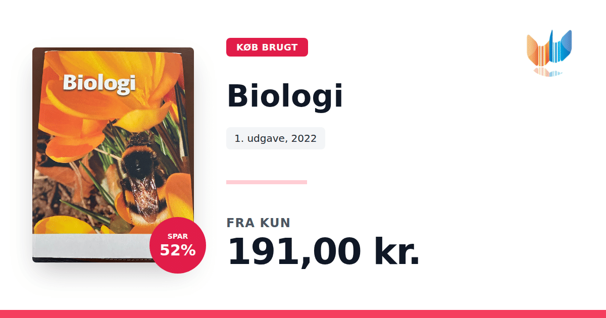 Lige nu kan du købe "Biologi" til kun 191,00 kr. Du sparer hele 52% af nyprisen! Bogen du ser her er brugt, og i god stand. Vi har i øjeblikket kun et enkelt eksemplar til salg af "Biologi", så slå til mens du kan!