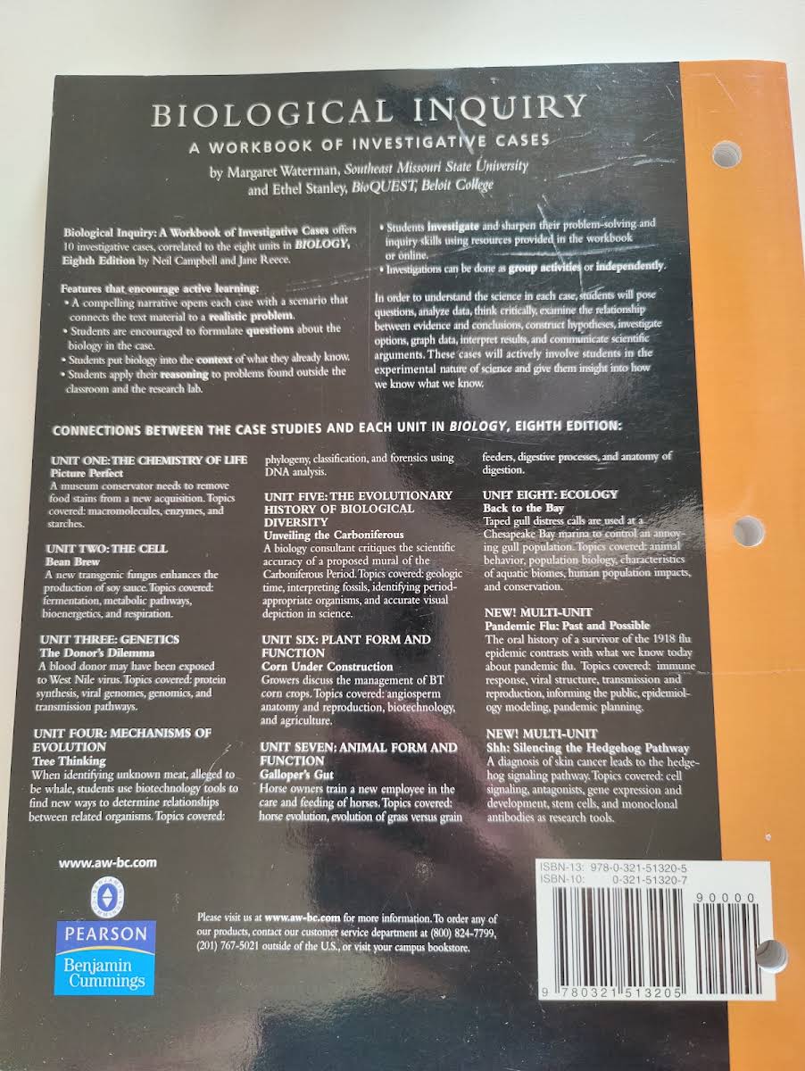 • Biological Inquiry, Neil A. Campbell, Margaret Waterman, Ethel Stanley, Jane B. Reece, 9780321513205