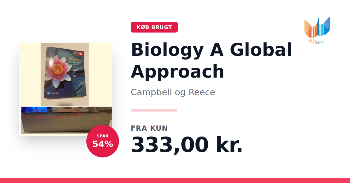 Lige nu kan du købe "Biology A Global Approach" af Campbell og Reece til kun 333,00 kr. Du sparer hele 54% af nyprisen! Bogen du ser her er brugt, og i god stand. Vi har i øjeblikket 2 eksemplarer til salg af "Biology: A Global Approach, Global Edition", så husk at se de forskellige udgaver.
