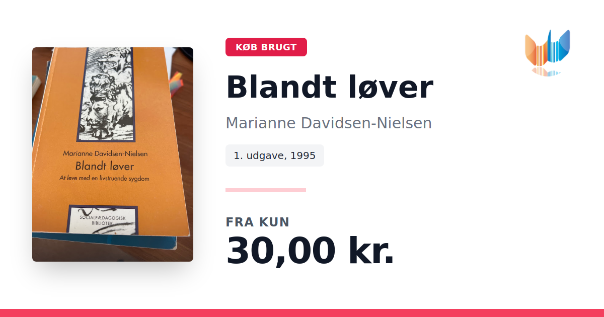 Lige nu kan du købe "Blandt løver" af Marianne Davidsen-Nielsen til kun 30,00 kr. Bogen du ser her er brugt, og i god stand. Vi har i øjeblikket 4 eksemplarer til salg af "Blandt løver", så husk at se de forskellige udgaver.