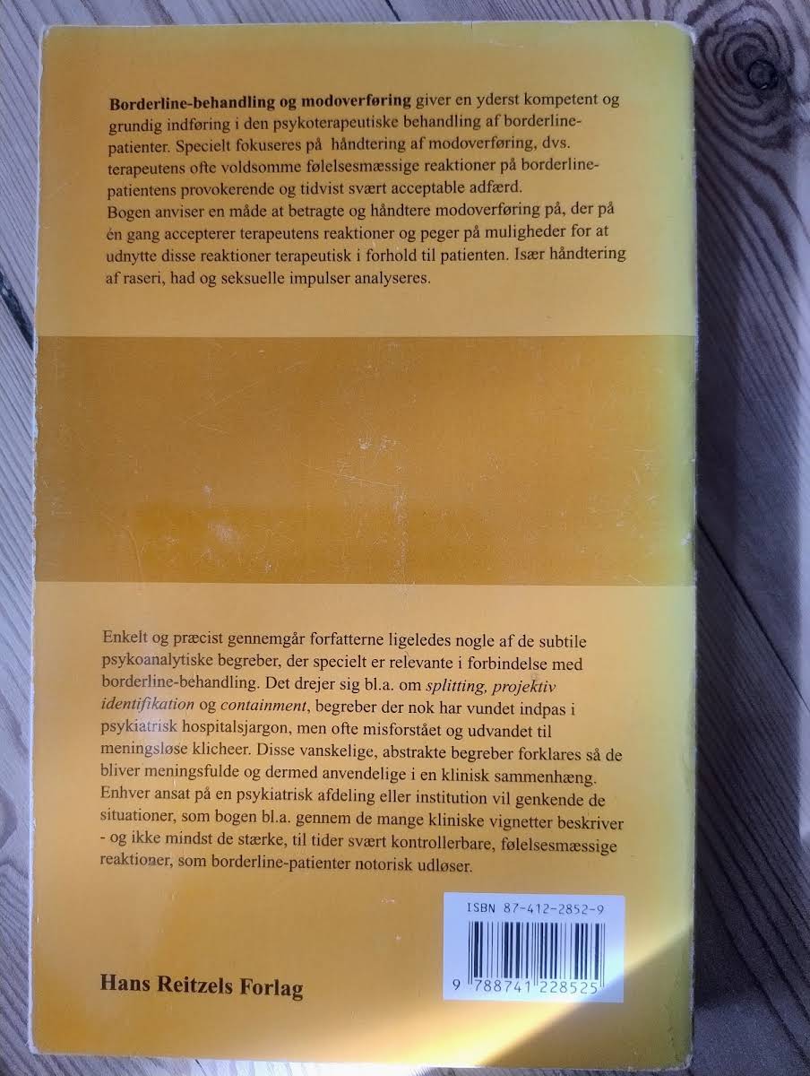 I *Borderline-behandling og modoverføring* giver Glen O. Gabbard en dybdegående og yderst faglig introduktion til den psykoterapeutiske indsats over for borderline-patienter. Værket belyser en række væsentlige forhold og problemstillinger, som alt behandlingspersonale på psykiatriske institutioner vil have stor gavn af at fordybe sig i. Bogen er desuden forsynet med et forord skrevet af Henning Paikin.