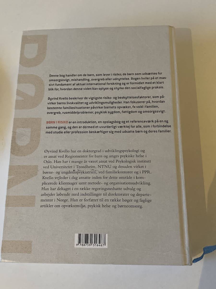 "Børn i risiko" giver et indsigtsfuldt blik på de udfordringer, som udsatte børn møder, når de lever under forhold præget af omsorgssvigt, mishandling, overgreb og fattigdom. Øyvind Kvello trækker på en solid international forskningsbase og præsenterer på en klar og struktureret måde, hvordan forskellige familiesituationer og samfundsmæssige forhold kan påvirke børns udvikling og livskvalitet. Bogen fungerer som et uvurderligt redskab for praktikere og studerende, der arbejder med udsatte børn og familier. Med fokus på både risikofaktorer og beskyttende elementer tilbyder "Børn i risiko" en dybdegående analyse af, hvordan et barns opvækst og omgivelser kan forme dets fremtid. Denne omhyggeligt dokumenterede tilgang gør bogen til en central inspirationskilde og et vigtigt bidrag til arbejdet med socialfaglig praksis.