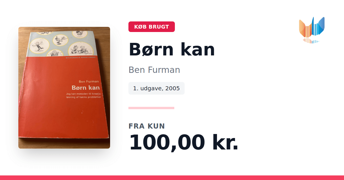 Lige nu kan du købe "Børn kan" af Ben Furman til kun 100,00 kr. Bogen du ser her er brugt, og i god stand. Vi har i øjeblikket 3 eksemplarer til salg af "Børn kan", så husk at se de forskellige udgaver.