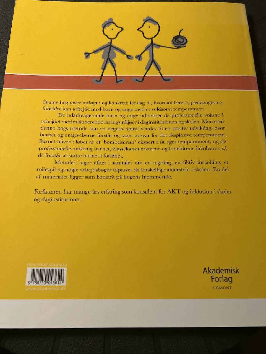 Børn med eksplosiv adfærd giver lærere, pædagoger og forældre konkrete redskaber til at forstå og arbejde positivt med børn og unge, der har svært ved at styre deres temperament. Med udgangspunkt i enkle principper hjælper bogen de voksne med at skabe trygge og inkluderende læringsmiljøer. Udadreagerende adfærd behandler metodisk de negative spiraler, der kan opstå, når et barn føler, at det mister kontrollen. Ved at skifte fokus fra straf til ansvarlighed lærer barnet gradvist at genkende sine egne triggere og håndtere dem konstruktivt. Centralt i forløbet står et ’bombekursus’, hvor barnet gennem samtaler om en tegning, en fiktiv fortælling og rollespil bliver ekspert i sit eget temperament. Arbejdsbøger, tilpasset forskellige aldersniveauer, støtter processen og giver konkrete øvelser, som barnet kan arbejde med i hverdagen. Det er ikke kun barnet, der involveres. Også professionelle omkring barnet, klassekammerater og forældre får indsigt i metoden, så de kan støtte, forstå og følge op på de små skridt mod en mere afbalanceret adfærd. Forfatteren Gry Bastiansen trækker på flere års erfaring som AKT-konsulent i skoler og daginstitutioner og formidler praktisk viden på kun 96 sider. Bogen udkom i 2013 på Akademisk Forlag som første udgave og er et værdifuldt værktøj i arbejdet med eksplosive børn.