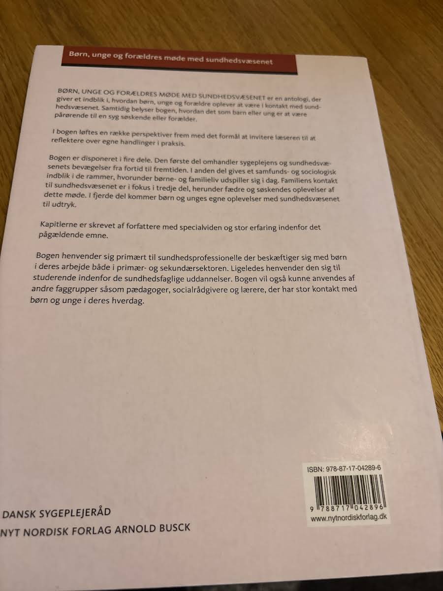 Børn, unge og forældres møde med sundhedsvæsenet er en antologi, der kaster lys over de mange nuancer i kontakten mellem familier og sundhedsvæsenet. Gennem fire tematiske sektioner inviteres læseren til at reflektere over, hvordan sundhedsvæsenet har udviklet sig fra fortidens praksis til nutidens udfordringer og muligheder. I den første del undersøges sundhedsvæsenets historiske rejse og de bevægelser, der har formet nutidens institutioner. Anden del kaster et sociologisk blik på de rammer, hvorunder børne- og familieliv udfolder sig i dag. Heri lægges der særlig vægt på, hvordan familiemedlemmer – fra fædre til søskende – oplever kontakten med sundhedssystemet. Den tredje sektion fokuserer direkte på forholdet mellem familie og sundhed, mens den fjerde del giver stemme til børn og unges egne erfaringer med systemet. Med bidrag fra en række fagpersoner med solid specialviden bliver bogen et redskab til at forstå og diskutere, hvordan sundhedspleje møder de unges og familiers behov i en moderne kontekst.