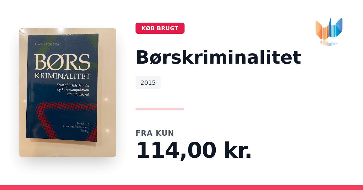 Lige nu kan du købe "Børskriminalitet" til kun 114,00 kr. Bogen du ser her er brugt, og i perfekt stand. Vi har i øjeblikket kun et enkelt eksemplar til salg af "Børskriminalitet", så slå til mens du kan!