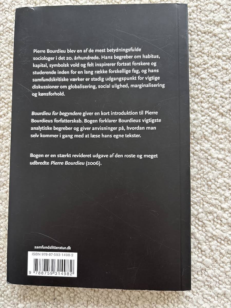 "Bourdieu for begyndere" er en ideel introduktion til en af det 20. århundredes mest indflydelsesrige sociologer, Pierre Bourdieu. Med et skarpt fokus på centrale begreber som habitus, kapital og symbolsk vold, præsenterer Lisanne Wilken Bourdieus teoretiske univers på en overskuelig og engagerende måde. Bogen, der udkom i 2011 hos Samfundslitteratur, formår at gøre komplekse teorier tilgængelige for både studerende og nysgerrige læsere. Med sine 149 sider tilbyder "Bourdieu for begyndere" et værdifuldt indblik i sociologisk tænkning, der fortsat har relevans i diskussioner om globalisering, social ulighed og marginalisering.
