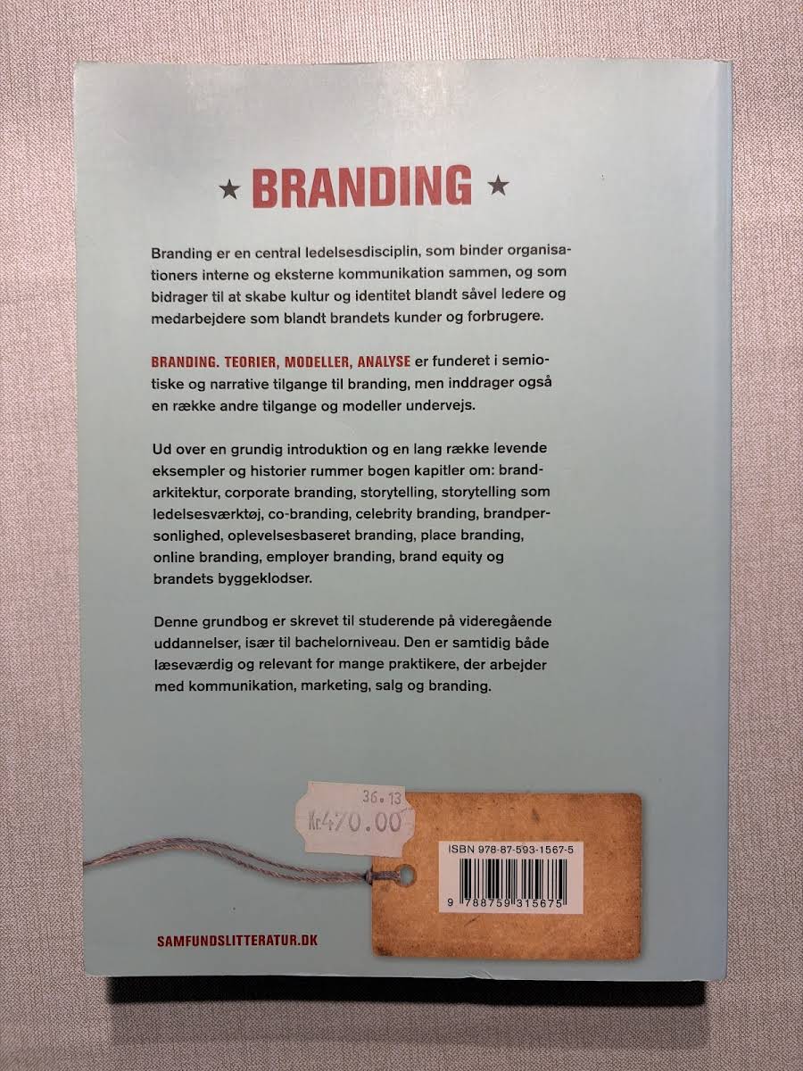 Branding er en afgørende ledelsesdisciplin, der forener organisationers interne og eksterne kommunikation og danner grundlag for en fælles kultur og identitet. Bogen præsenterer et solidt teoretisk fundament med rødder i semiotiske og narrative tilgange, mens den samtidig inddrager en bred vifte af modeller og metoder inden for branding. Med levende eksempler og illustrative cases udforsker bogen centrale emner såsom brandarkitektur, corporate branding, storytelling, co-branding, celebrity branding, brandpersonlighed, oplevelsesbaseret branding, place branding, online branding, employer branding, brand equity og de grundlæggende byggeklodser bag et stærkt brand. Denne grundbog henvender sig primært til studerende på videregående uddannelser, særligt på bachelorniveau, men er også yderst relevant for praktikere, der arbejder med kommunikation, marketing, salg og branding.