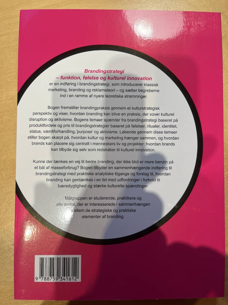 "Brandingstrategi. Funktion, følelse og kulturel innovation" er en introduktion til brandingstrategiens verden, der kombinerer klassisk marketing, branding og reklameteori med nyere teoretiske strømninger. Gennem et kulturstrategisk perspektiv udforsker bogen, hvordan branding kan udvikles til at udfordre normerne og fremme kulturel innovation. Bogen dykker ned i en bred palet af brandingtilgange – lige fra strategier baseret på produktfordele og pris til dem, der bygger på følelser, ritualer, identitet, status og værdiforhandling. Undervejs stilles skarpt på, hvordan kultur og marketing interagerer, og hvordan brands kan blive redskaber til at skabe meningsfuld forandring i en tid med øgede krav til bæredygtighed og kulturel dynamik. Ved at tilbyde praktiske og analytiske indgangsvinkler til brandingstrategi henvender bogen sig til både studerende og praktikere, der ønsker at forstå de strategiske og praktiske dimensioner af moderne branding.