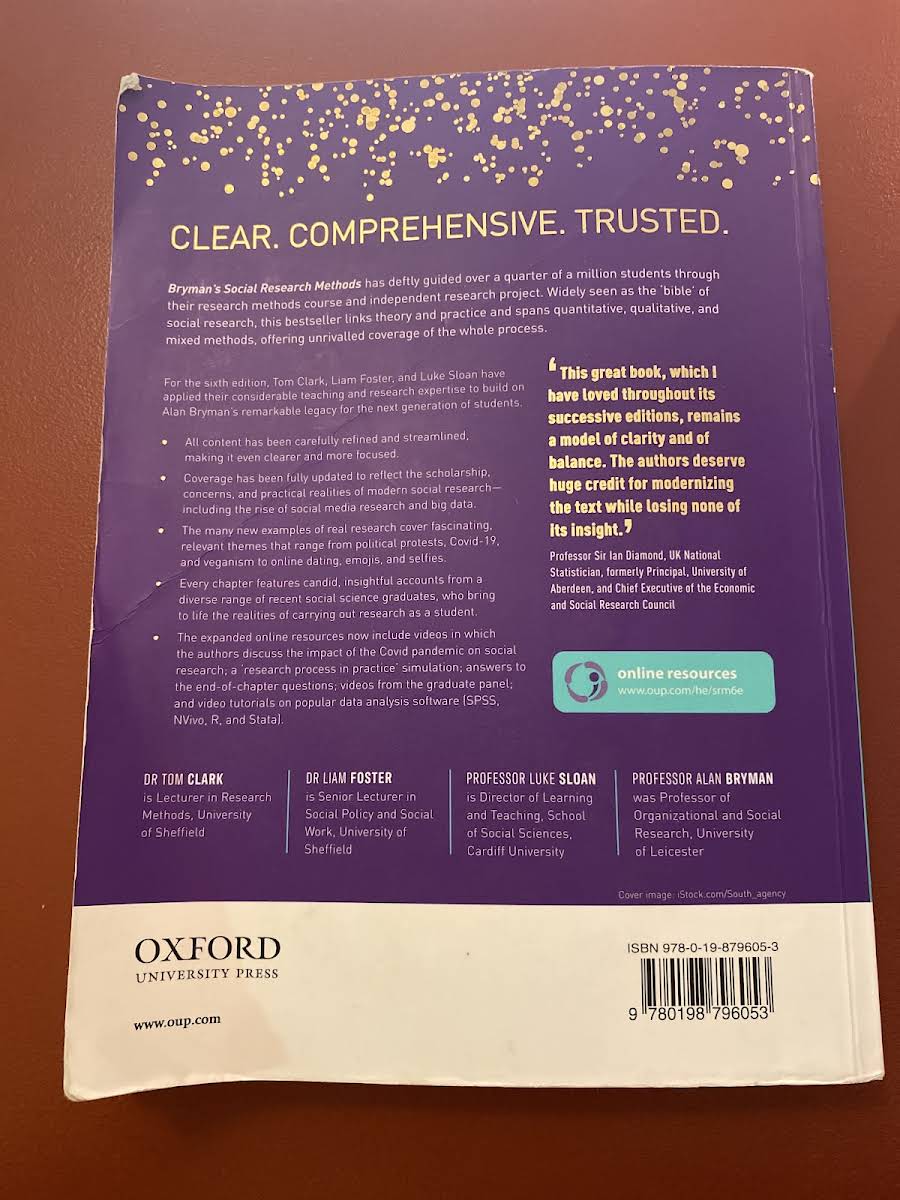 Bryman's Social Research Methods remains an essential resource for over a quarter of a million students navigating the complexities of social research. Now in its sixth edition, this trusted text integrates theory and practice to cover quantitative, qualitative, and mixed methods, providing an unparalleled overview of the entire research process. The authors have refined the content with careful input from lecturers and students, ensuring that every chapter speaks to the demands of the modern social science landscape. This edition introduces a wealth of new examples and expanded material on emerging topics such as social media research and big data. In addition, insights from a panel of recent graduates illuminate the real-life challenges and successes encountered in their diverse research projects. With reflective 'Learn from experience' boxes scattered throughout, the book equips students with practical advice and thoughtful analysis to support their journey in research.