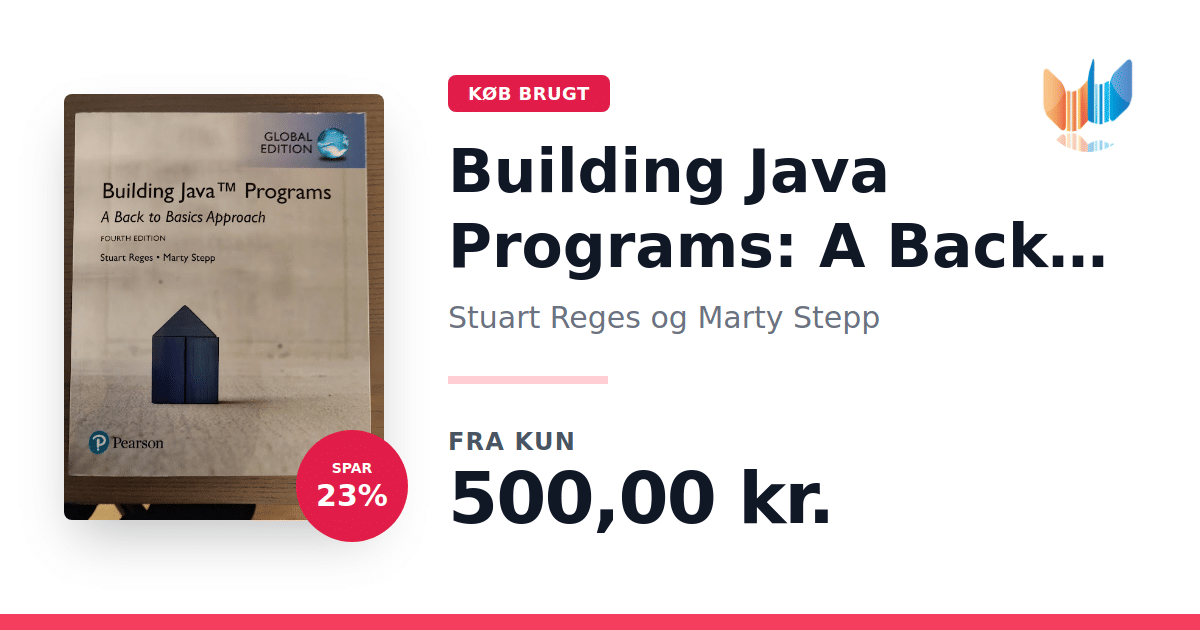 Lige nu kan du købe "Building Java Programs: A Back to Basics Approach, Global Edition" af Stuart Reges og Marty Stepp til kun 500,00 kr. Du sparer hele 23% af nyprisen! Bogen du ser her er brugt, og i perfekt stand. Vi har i øjeblikket 4 eksemplarer til salg af "Building Java Programs: A Back to Basics Approach, Global Edition", så husk at se de forskellige udgaver.