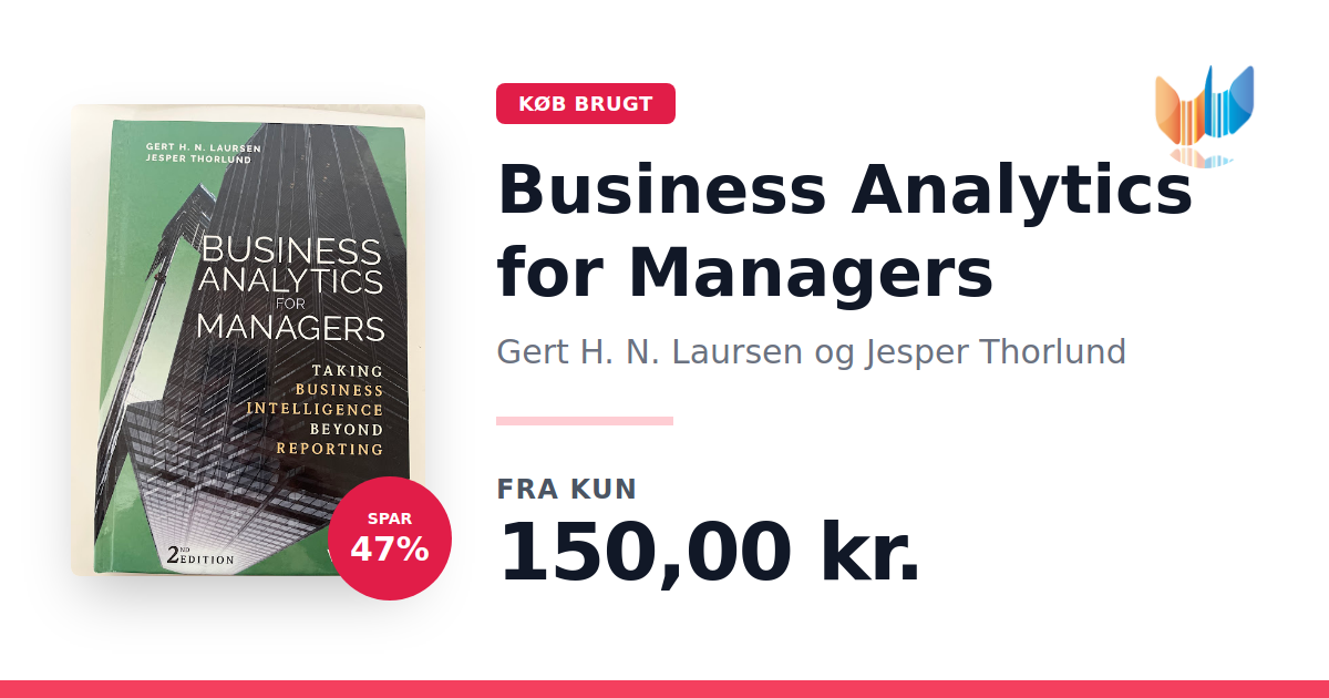 Lige nu kan du købe "Business Analytics for Managers" af Gert H. N. Laursen og Jesper Thorlund til kun 150,00 kr. Du sparer hele 47% af nyprisen! Bogen du ser her er brugt, og i perfekt stand. Vi har i øjeblikket kun et enkelt eksemplar til salg af "Business Analytics for Managers", så slå til mens du kan!