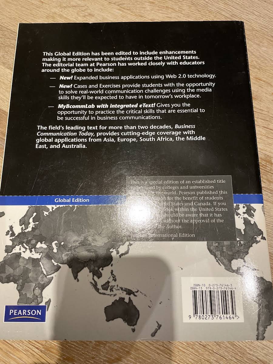 Business Communication Today af Courtland L. Bovée og John V. Thill har i mere end to årtier været et af de førende læremidler inden for forretningskommunikation. Den seneste udgave fra 2012 foreligger som paperback i engelsk originaludgave på 720 sider. Bogen leverer en omfattende og tidssvarende gennemgang af både skriftlig og mundtlig kommunikation, så studerende bliver klædt på til den virkelige erhvervskontekst. Hvor mange tekster blot genopfrisker forældede metoder, er indholdet her skræddersyet til nutidens krav om klar og effektiv formidling. Med introduktionen af Business Communication 2.0 præsenteres et interaktivt, samtalebaseret model, der inviterer til ny tænkning omkring kommunikation. Studerende guides i professionel brug af blogs, instant messaging, wikis, twittering og andre sociale medier. Den klare struktur, relevante case-studier og praktiske øvelser sikrer, at teori og praksis går hånd i hånd. Business Communication Today er det ideelle valg for alle, der ønsker fuld forberedelse på de kommunikationsudfordringer, det moderne erhvervsliv stiller.