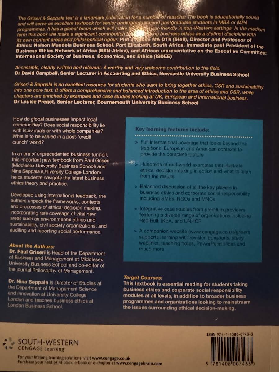 • Business Ethics and Corporate Social Responsibility, Paul Griseri, 9781408007433