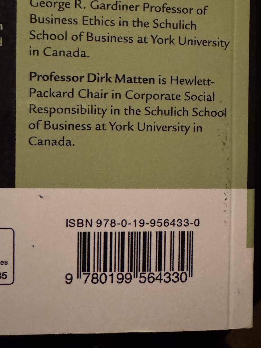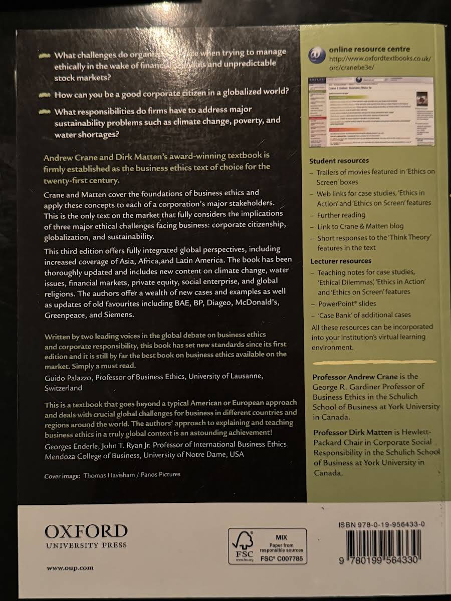 • Business Ethics, Andrew Crane, Dirk Matten, 9780199564330