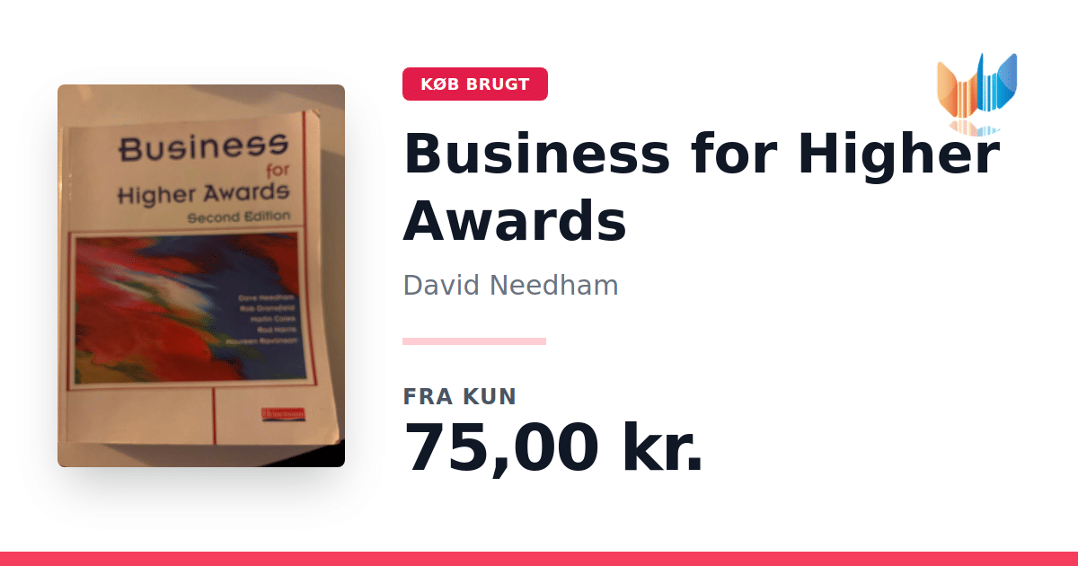 Lige nu kan du købe "Business for Higher Awards" af David Needham til kun 75,00 kr. Bogen du ser her er brugt, og i slidt stand. Vi har i øjeblikket kun et enkelt eksemplar til salg af "Business for Higher Awards", så slå til mens du kan!