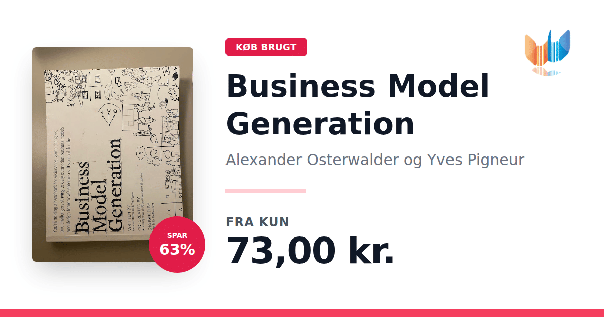 Lige nu kan du købe "Business Model Generation" af Alexander Osterwalder og Yves Pigneur til kun 73,00 kr. Du sparer hele 63% af nyprisen! Bogen du ser her er brugt, og i god stand. Vi har i øjeblikket 9 eksemplarer til salg af "Business Model Generation", så husk at se de forskellige udgaver.