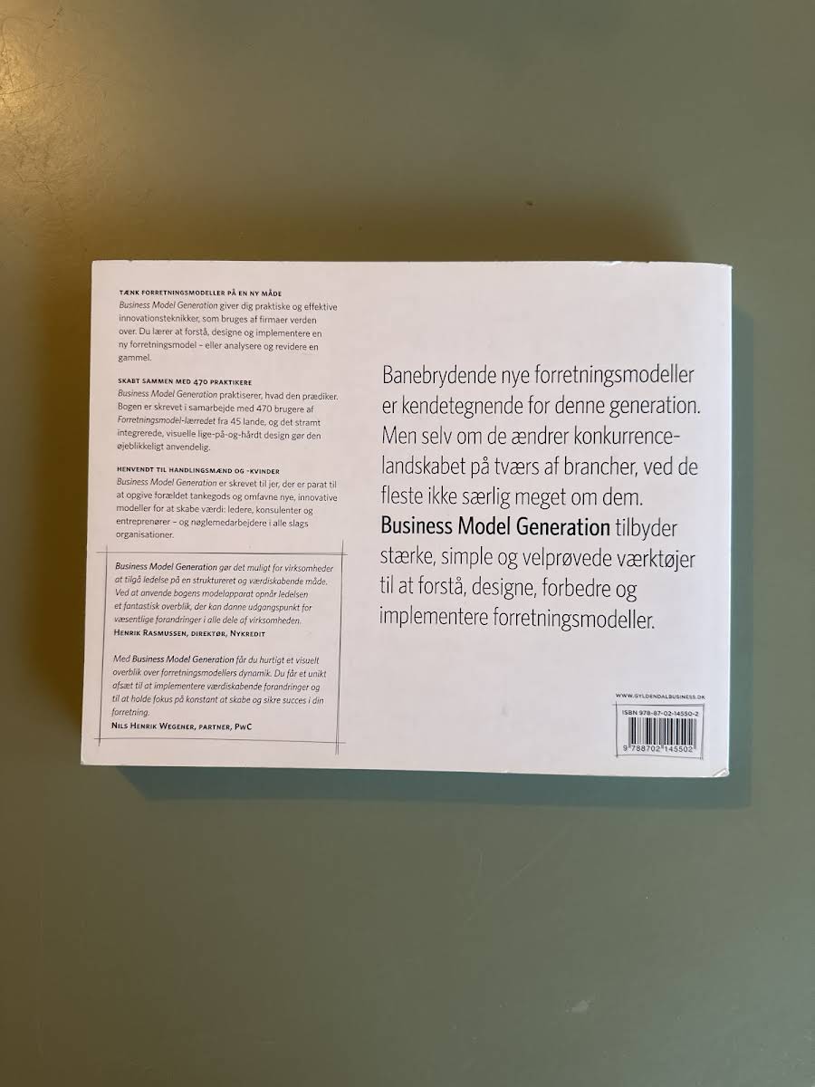 I en verden hvor forretningsmodeller konstant udvikler sig, er "Business model generation" en uundværlig guide for dem, der ønsker at skabe nye, innovative veje. Med enkle redskaber og en effektiv skabelon viser Alexander Osterwalder og Yves Pigneur, hvordan man kan omsætte visioner og idéer til konkrete og bæredygtige modeller. Bogen byder på en praktisk tilgang til at udfolde de mange facetter ved at skabe en forretningsmodel. Her præsenteres et strategilærred, som giver klarhed og struktur, uanset om man er iværksætter, banebrydende leder eller en engageret nystartet virksomhedsejer. Med "Business model generation" får du en moderne håndbog, der udfordrer traditionelle forretningsmodeller og inspirerer til at tænke ud af boksen. En bog, der ikke blot taler til eksperten men også giver enhver mulighed for at designe en virksomheds fundament – med innovation og selvsikkerhed.