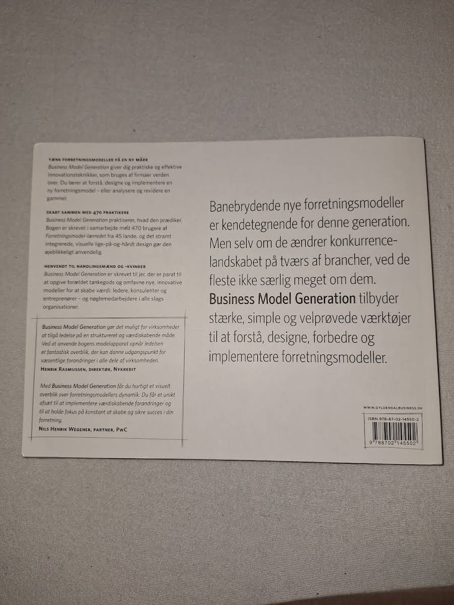 I en verden hvor forretningsmodeller konstant udvikler sig, er "Business model generation" en uundværlig guide for dem, der ønsker at skabe nye, innovative veje. Med enkle redskaber og en effektiv skabelon viser Alexander Osterwalder og Yves Pigneur, hvordan man kan omsætte visioner og idéer til konkrete og bæredygtige modeller. Bogen byder på en praktisk tilgang til at udfolde de mange facetter ved at skabe en forretningsmodel. Her præsenteres et strategilærred, som giver klarhed og struktur, uanset om man er iværksætter, banebrydende leder eller en engageret nystartet virksomhedsejer. Med "Business model generation" får du en moderne håndbog, der udfordrer traditionelle forretningsmodeller og inspirerer til at tænke ud af boksen. En bog, der ikke blot taler til eksperten men også giver enhver mulighed for at designe en virksomheds fundament – med innovation og selvsikkerhed.