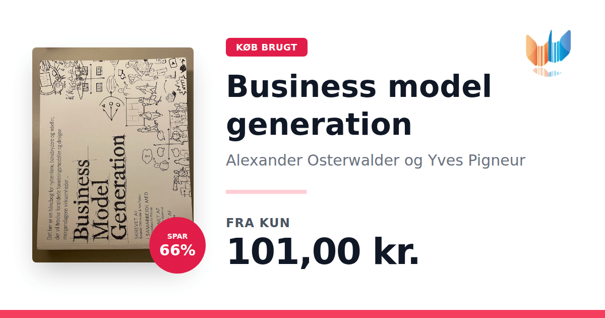 Lige nu kan du købe "Business model generation" af Alexander Osterwalder og Yves Pigneur til kun 101,00 kr. Du sparer hele 66% af nyprisen! Bogen du ser her er brugt, og i perfekt stand. Vi har i øjeblikket 9 eksemplarer til salg af "Business Model Generation", så husk at se de forskellige udgaver.
