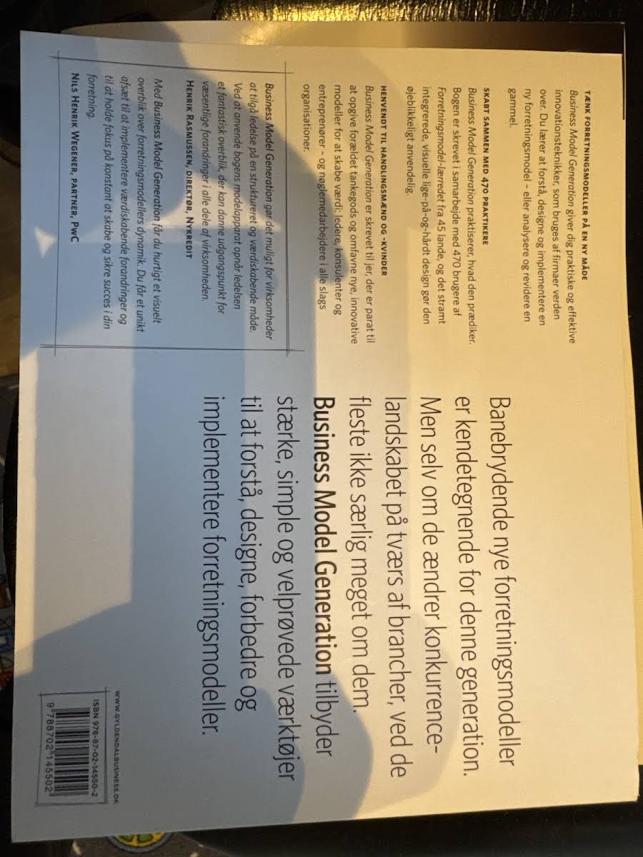 I en verden hvor forretningsmodeller konstant udvikler sig, er "Business model generation" en uundværlig guide for dem, der ønsker at skabe nye, innovative veje. Med enkle redskaber og en effektiv skabelon viser Alexander Osterwalder og Yves Pigneur, hvordan man kan omsætte visioner og idéer til konkrete og bæredygtige modeller. Bogen byder på en praktisk tilgang til at udfolde de mange facetter ved at skabe en forretningsmodel. Her præsenteres et strategilærred, som giver klarhed og struktur, uanset om man er iværksætter, banebrydende leder eller en engageret nystartet virksomhedsejer. Med "Business model generation" får du en moderne håndbog, der udfordrer traditionelle forretningsmodeller og inspirerer til at tænke ud af boksen. En bog, der ikke blot taler til eksperten men også giver enhver mulighed for at designe en virksomheds fundament – med innovation og selvsikkerhed.