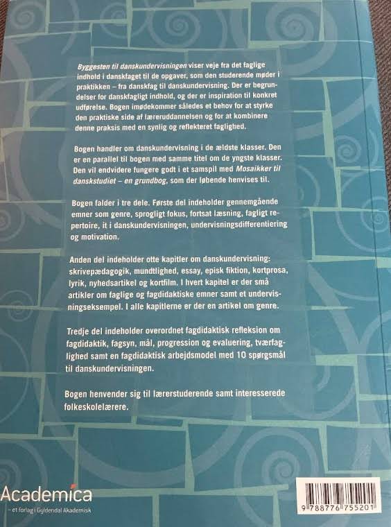 Byggesten til danskundervisningen – fagdidaktik og metode 5.-9. klasse er en praktisk og inspirerende guide, der oversætter danskfagets indhold til konkrete undervisningsstrategier. Bogen retter sig mod lærerstuderende og folkeskolelærere, som ønsker at kombinere en solid teoretisk basis med virkelighedsnære eksempler i undervisningen. Med udgangspunkt i relevante emner som genrebevidsthed, sprogligt fokus, motivation og digitalisering præsenterer forfatterne metoder, der understøtter både planlægning og gennemførelse af danskundervisningen. Gennem en systematisk opbygning, der spænder fra teoretiske overvejelser til praktiske eksempler, giver bogen læseren redskaber til at skabe en reflekteret, varieret og engagerende undervisningspraksis.