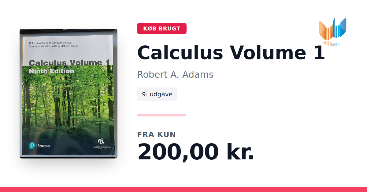 Lige nu kan du købe "Calculus Volume 1" af Robert A. Adams til kun 200,00 kr. Bogen du ser her er brugt, og i perfekt stand. Vi har i øjeblikket kun et enkelt eksemplar til salg af "Calculus Volume 1", så slå til mens du kan!