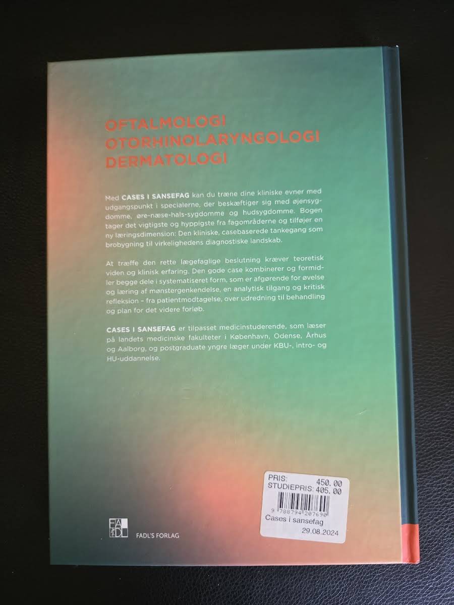 I *Cases i sansefag: Oftalmologi - ØNH - Dermatologi* får du et solidt redskab til at omsætte teoretisk viden til klinisk praksis. Bogen fokuserer på de vigtigste og mest frekvente problemstillinger inden for øjen-, øre-næse-hals- og hudsygdomme. Med sin casebaserede tilgang fungerer udgivelsen som en essentiel brobygger mellem bøgerne og det diagnostiske landskab, man møder i virkeligheden. At træffe de rette lægefaglige beslutninger kræver en tæt kombination af viden og klinisk erfaring. Gennem systematisk opbyggede cases formidler bogen netop dette sammenspil. Læseren får rig mulighed for at træne mønstergenkendelse, kritisk refleksion og en analytisk tilgang til hele patientforløbet - lige fra den indledende modtagelse over udredningen til den endelige behandling og videre plan. Bogen er skræddersyet til medicinstuderende ved landets medicinske fakulteter i København, Aarhus, Odense og Aalborg. Derudover er den yderst relevant for postgraduate yngre læger, som befinder sig i KBU-, intro- eller hoveduddannelsesforløb. For at sikre højeste faglige kvalitet er bogen forfattet af dygtige speciallæger inden for hvert deres respektive fagområde.