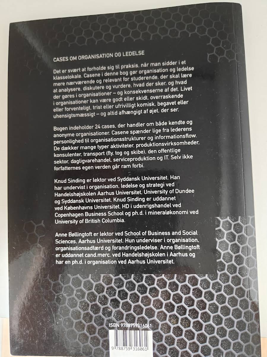 At studere organisation og ledelse direkte fra virkeligheden kan ofte synes abstrakt, når man blot læser teoretiske beskrivelser. Denne bog samler 24 distinkte cases, som gør det nemmere for studerende at se, hvordan teori omsættes i praksis. Gennem case-baserede eksempler får man indsigt i, hvordan forskellige ledelsesstile og organisatoriske strukturer former hverdagen i både kendte og mindre kendte virksomheder. Casene spænder bredt – fra individuelle lederes personlighed og beslutningsprocesser til komplekse informationsflow og organisatoriske løsninger. Eksemplerne dækker en række brancher, herunder produktionsvirksomheder, konsulentvirksomheder, transportsektoren, den offentlige sektor, dagligvarehandel, serviceproduktion og IT. Med sit virkelighedsnære og varierede materiale bidrager "Cases om organisation og ledelse" til en dybere forståelse af, hvordan ledelse og organisation håndteres i praksis, og den gør dermed stoffet levende og relevant for undervisningen. Bogen findes også på engelsk.