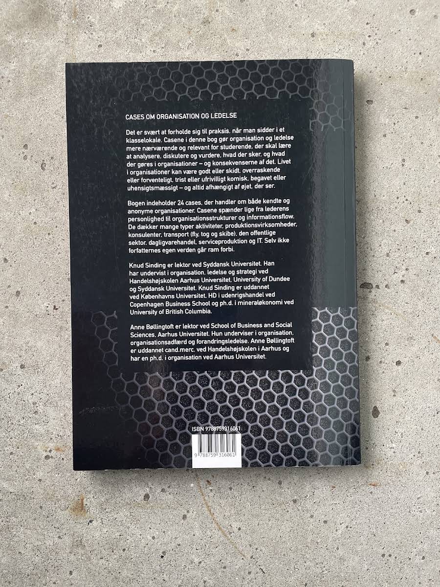 At studere organisation og ledelse direkte fra virkeligheden kan ofte synes abstrakt, når man blot læser teoretiske beskrivelser. Denne bog samler 24 distinkte cases, som gør det nemmere for studerende at se, hvordan teori omsættes i praksis. Gennem case-baserede eksempler får man indsigt i, hvordan forskellige ledelsesstile og organisatoriske strukturer former hverdagen i både kendte og mindre kendte virksomheder. Casene spænder bredt – fra individuelle lederes personlighed og beslutningsprocesser til komplekse informationsflow og organisatoriske løsninger. Eksemplerne dækker en række brancher, herunder produktionsvirksomheder, konsulentvirksomheder, transportsektoren, den offentlige sektor, dagligvarehandel, serviceproduktion og IT. Med sit virkelighedsnære og varierede materiale bidrager "Cases om organisation og ledelse" til en dybere forståelse af, hvordan ledelse og organisation håndteres i praksis, og den gør dermed stoffet levende og relevant for undervisningen. Bogen findes også på engelsk.