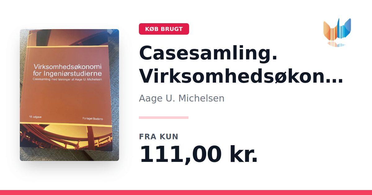 Lige nu kan du købe "Casesamling. Virksomhedsøkonomi for ingeniørstudierne" af Aage U. Michelsen til kun 111,00 kr. Bogen du ser her er brugt, og i perfekt stand. Vi har i øjeblikket kun et enkelt eksemplar til salg af "Casesamling. Virksomhedsøkonomi for ingeniørstudierne", så slå til mens du kan!