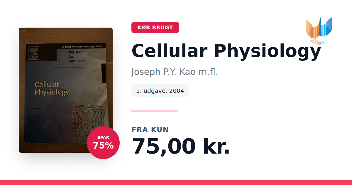 Lige nu kan du købe "Cellular Physiology" af Joseph P.Y. Kao m.fl. til kun 75,00 kr. Du sparer hele 75% af nyprisen! Bogen du ser her er brugt, og i god stand. Vi har i øjeblikket 5 eksemplarer til salg af "Cellular Physiology", så husk at se de forskellige udgaver.