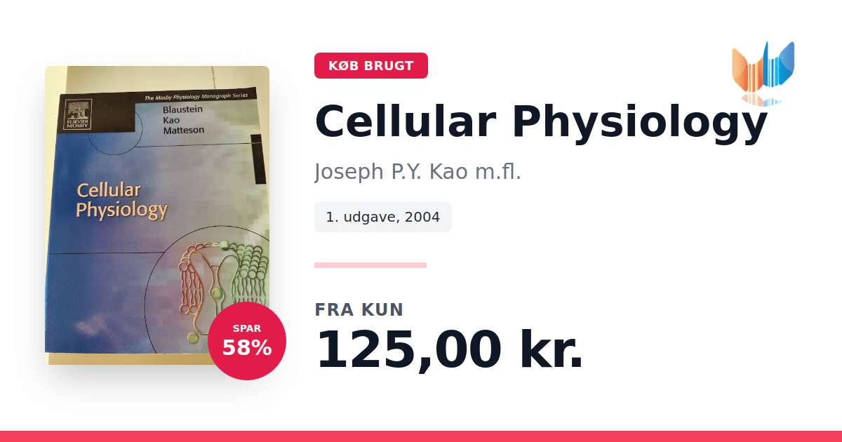 Lige nu kan du købe "Cellular Physiology" af Joseph P.Y. Kao m.fl. til kun 125,00 kr. Du sparer hele 58% af nyprisen! Bogen du ser her er brugt, og i god stand. Vi har i øjeblikket 5 eksemplarer til salg af "Cellular Physiology", så husk at se de forskellige udgaver.